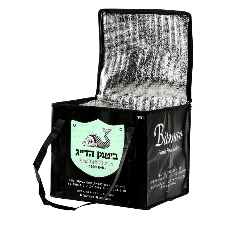 שקית /צידנית השומרת על חום/קור של המוצרים שלך ועוזרים לך לשמור על טריות המוצרים עד 4 שעות מרגע עזיבת הלקוח את החנות .